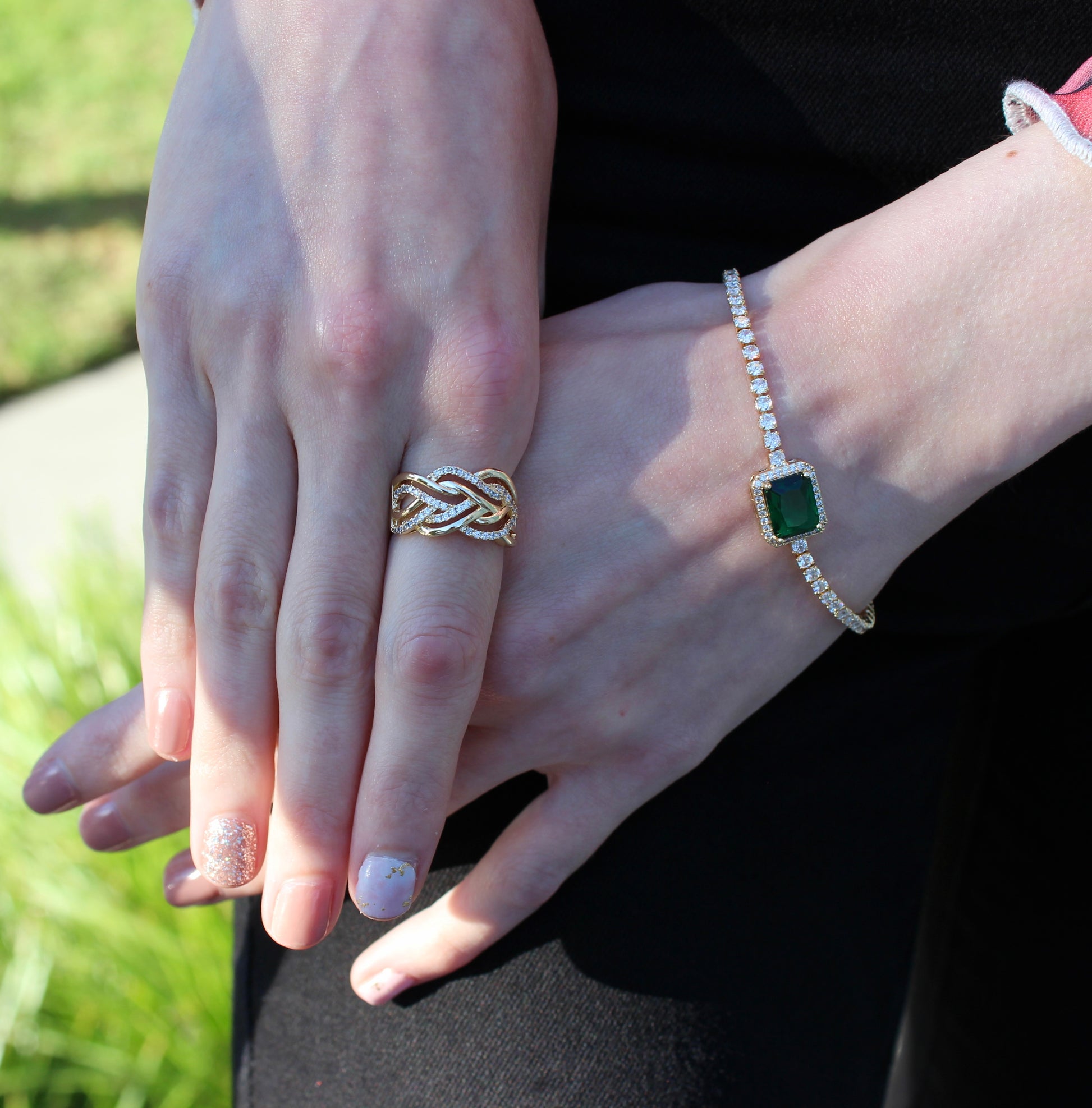 Introducing the Majestic Mirage Band from HappyB, a stunning swirl of gold plated metal and zirconia stones. Its elegant design and radiant sparkle make it an enchanting jewelry to any ensemble, adding a touch of timeless allure to your style.